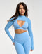 Stay ahead of the trend with the Echt Ribbed High Cut Long Sleeve, designed to accentuate your natural curves with its chic, forward-thinking design. This stylish crop top features a seamless ribbed fabric that offers a secure fit and an open front design for layering over bras.