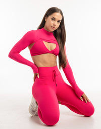 Echt Ribbed High Cut Long Sleeve - Bright Pink