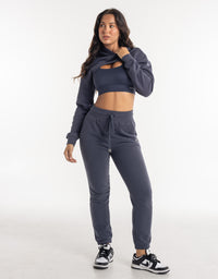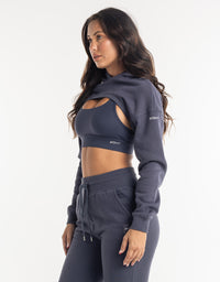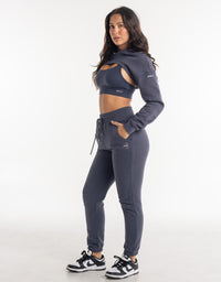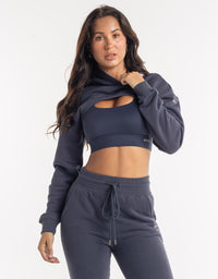 Cropped High Cut Hoodie - Smoke Grey