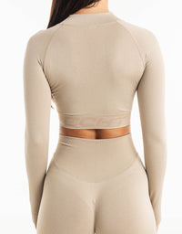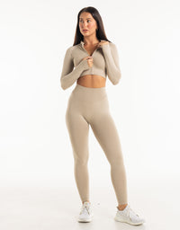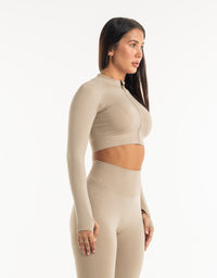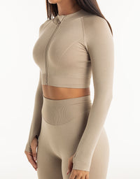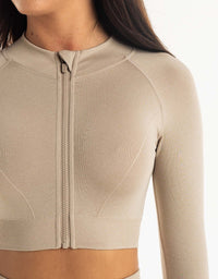 League Cropped Zip-Up - Taupe Grey