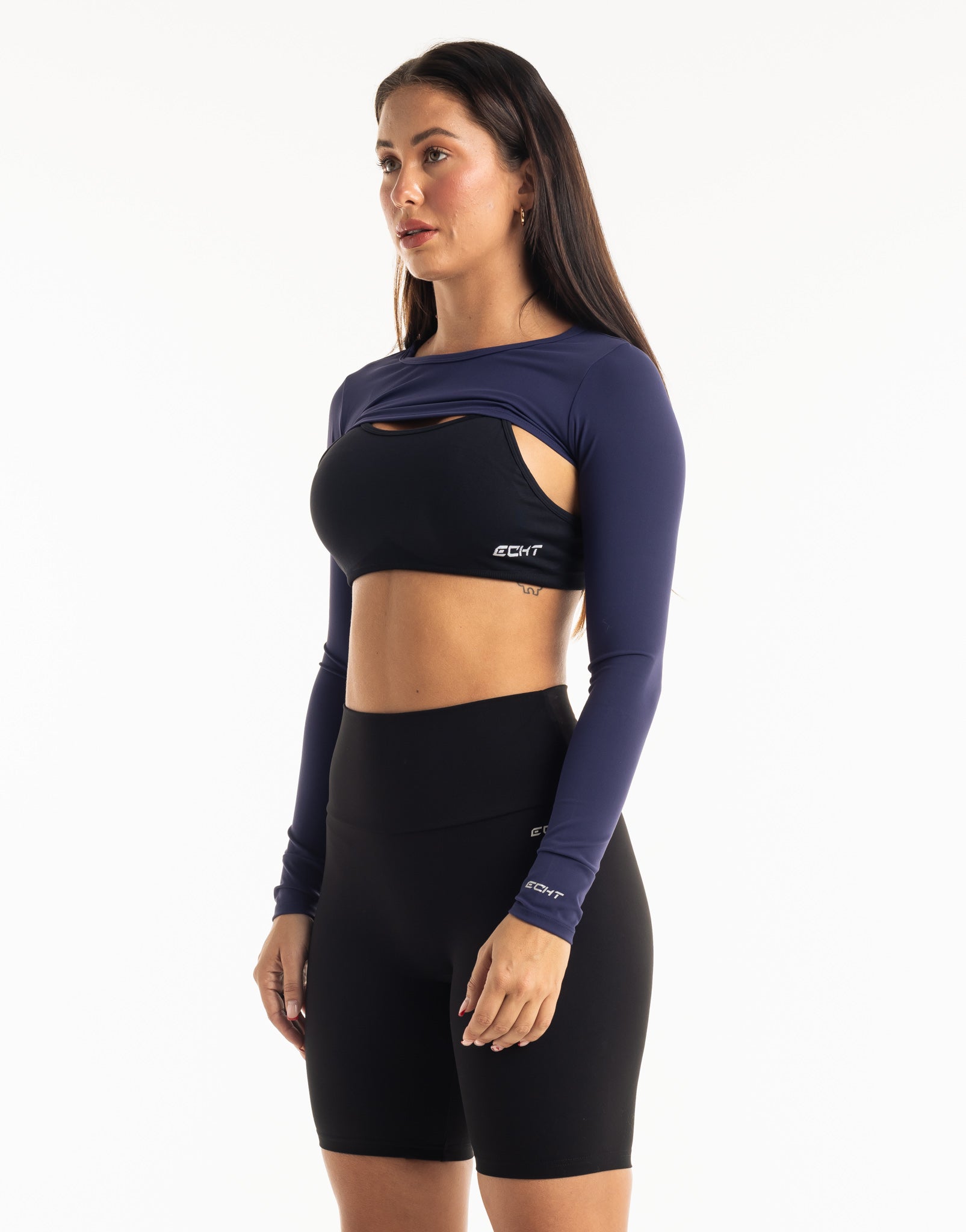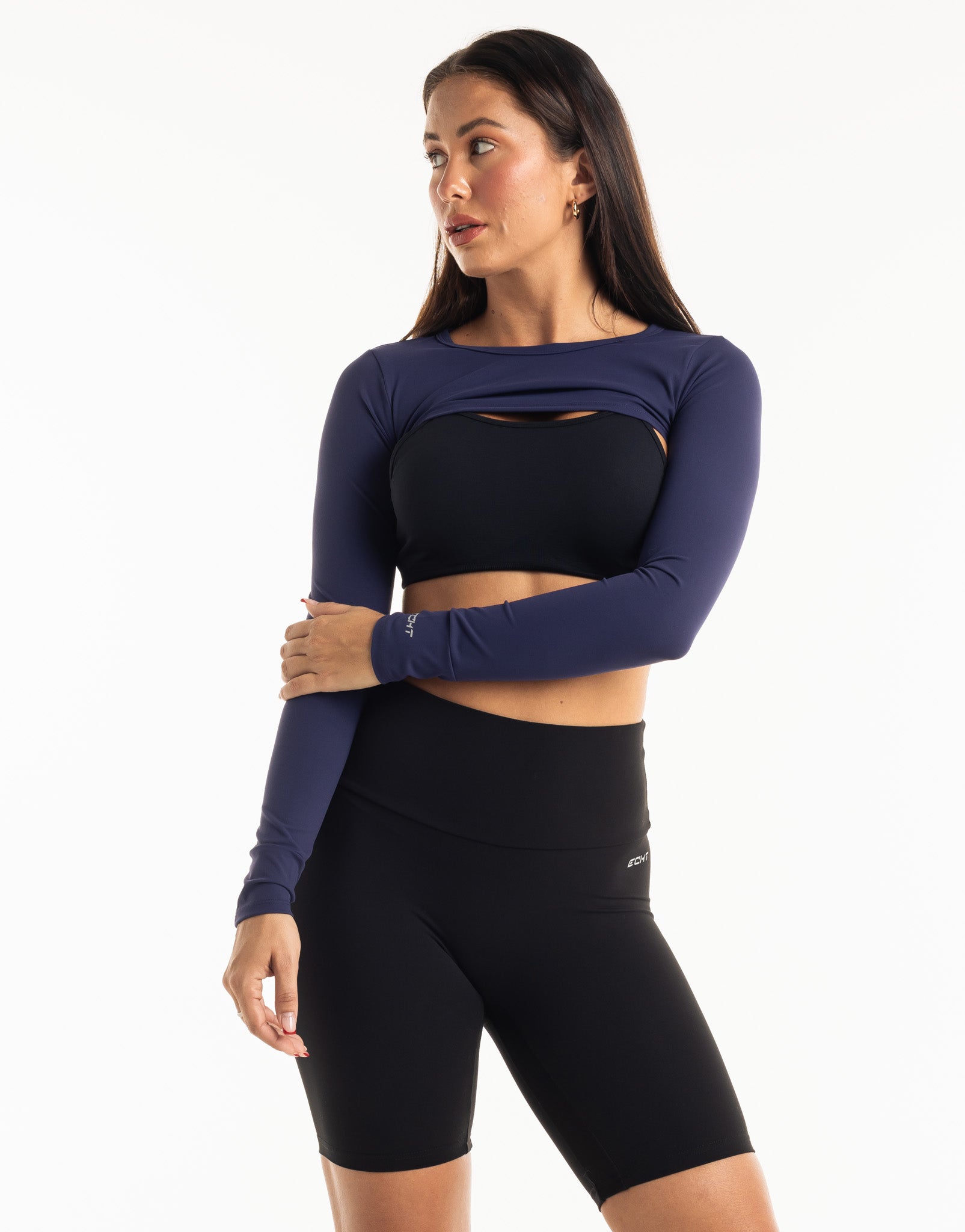 Functional athleisure at its finest. The Range Long Sleeve is the perfect garment to complete your workout look. Featuring a slim fit, super cropped length, the Range Long Sleeve is perfect to throw over your favorite ECHT Sports Bra  or with Range V3 Sports Bra as shown and matching Range Leggings!